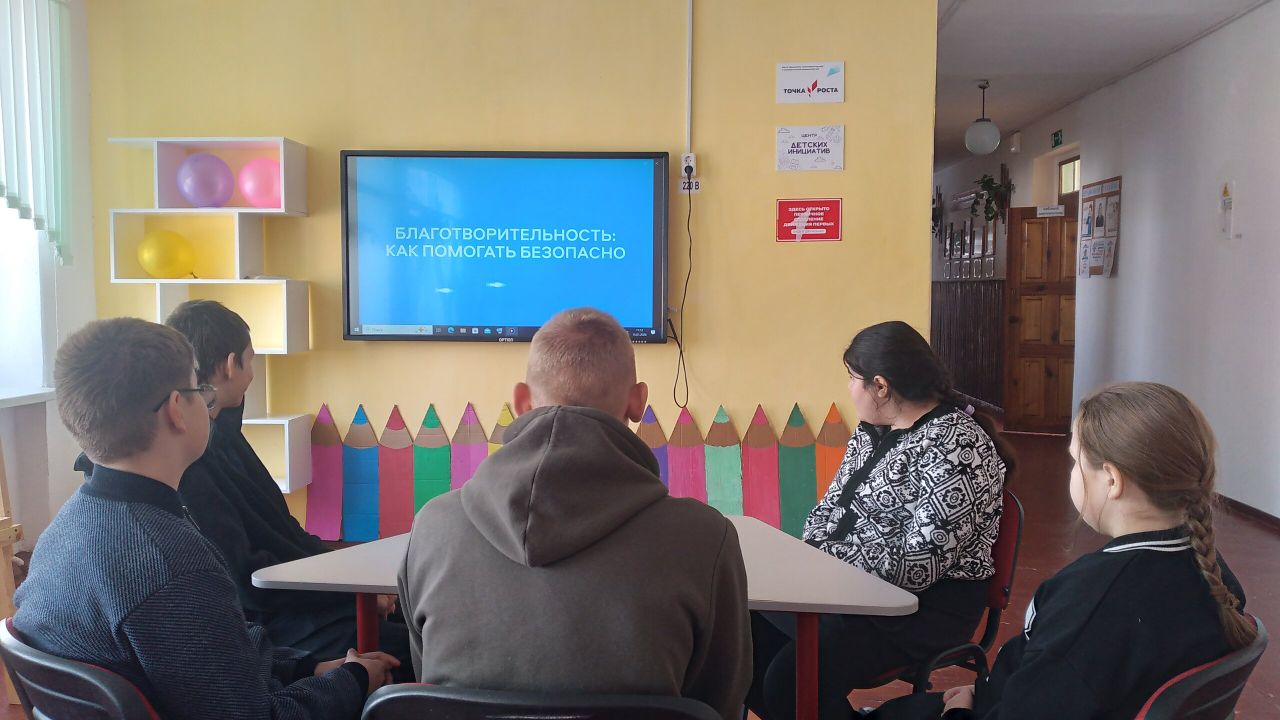 В рамках просветительского проекта «Цифровой ликбез» с учащимися 5-8 кл. был проведен урок по цифровой грамотности и кибербезопасности от компании «Авито» по теме «Благотворительность: как помогать безопасно». В самом начале урока посмотрели видеоролик по теме занятия. Ребята ознакомились с ключевыми понятиями, изучили основные правила безопасной помощи в интернете, отработали на примерах и кейс-ситуациях безопасные варианты поведения. В конце урока ученики прошли тест и получили сертификаты.